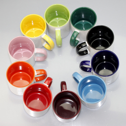 مخصص بالجملة جودة عالية فارغة نقل الحرارة 11 أونصة اللون داخل التسامي السيراميك القهوة كوب مع مقبض ملون