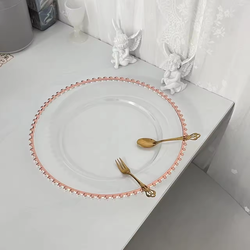 Nhà Máy Bán buôn thân thiện với môi 13 \ "Glass Charger tấm vàng trong suốt Rose Gold White Black rim cho trang trí đám cưới